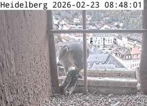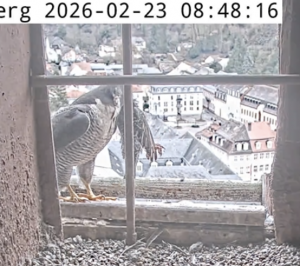Erfreulicherweise fliegt sie mit der großen Beute ab, um diese an anderer Stelle zu kröpfen. So bleibt der Nistkasten noch frei von Federn.