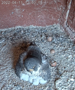 Wann schlüpften 2021 die Küken? Am 8. April zwei Küken, dann im Tagesabstand am 9. und 10. April. je eines. 2022 schlüpfte am 7. kurz vor Tagesbeginn des 8. April ein Küken, dann folgten im Tagesabstand am 9. April ein Küken und am 10. April 2 Küken.
