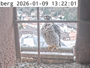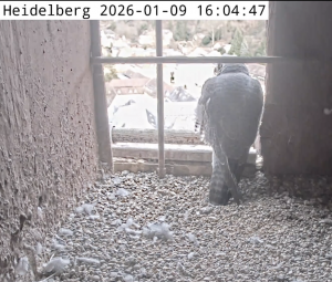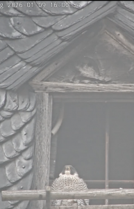 LISELOTTE vergewissert sich in den nächsten Wochen, ob ihr Nistplatz auch 2026 passend ist und ob ihr Partner geeignet ist, sie und den Nachwuchs in diesem Jahr während der Brut und Aufzucht zu versorgen. (Es ist durchaus möglich, dass ein neues, stärkeres Falkenweibchen LISELOTTE verdrängt, oder ein neuer Terzel auftritt!)